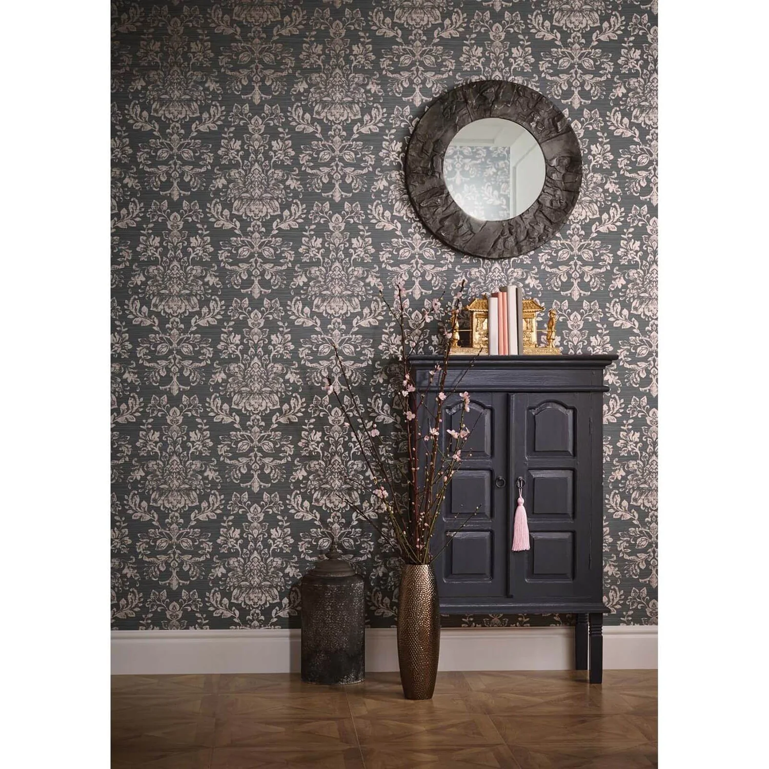 Arthouse Kyasha Damask Embossed Metallic Foil Rose Gold Wallpaper
