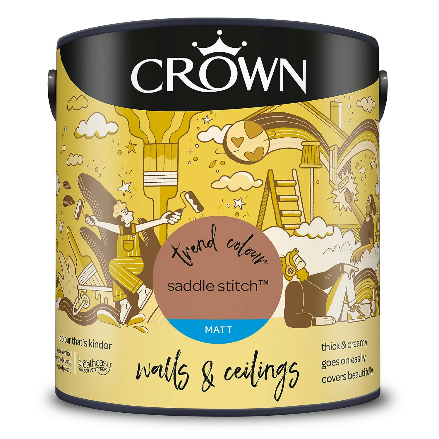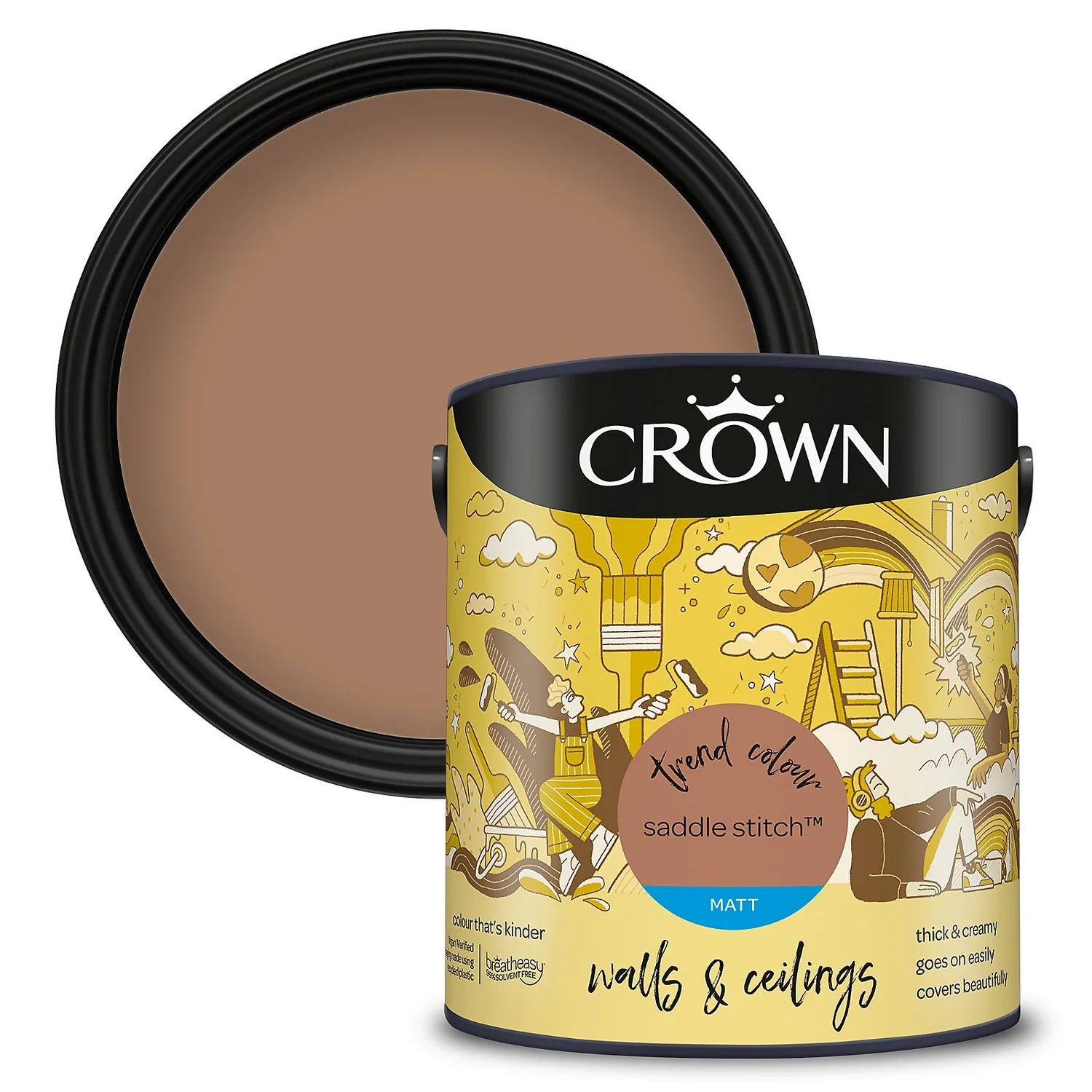 Saddle Stitch – A Lovely, Warming yellow Paint. One of 80 colours available in this size, Saddle Stitch is a unique shade of yellow paint that provides a comforting feel to any room setting. Add a touch of warmth to any space, and to any room, with this beautiful yellow paint. ‘The deep tan colour of Saddle Stitch is a shade we’ve seen on the catwalk for all seasons and we’re already seeing this shade transferring well to interiors’- Crown Colour Specialist.