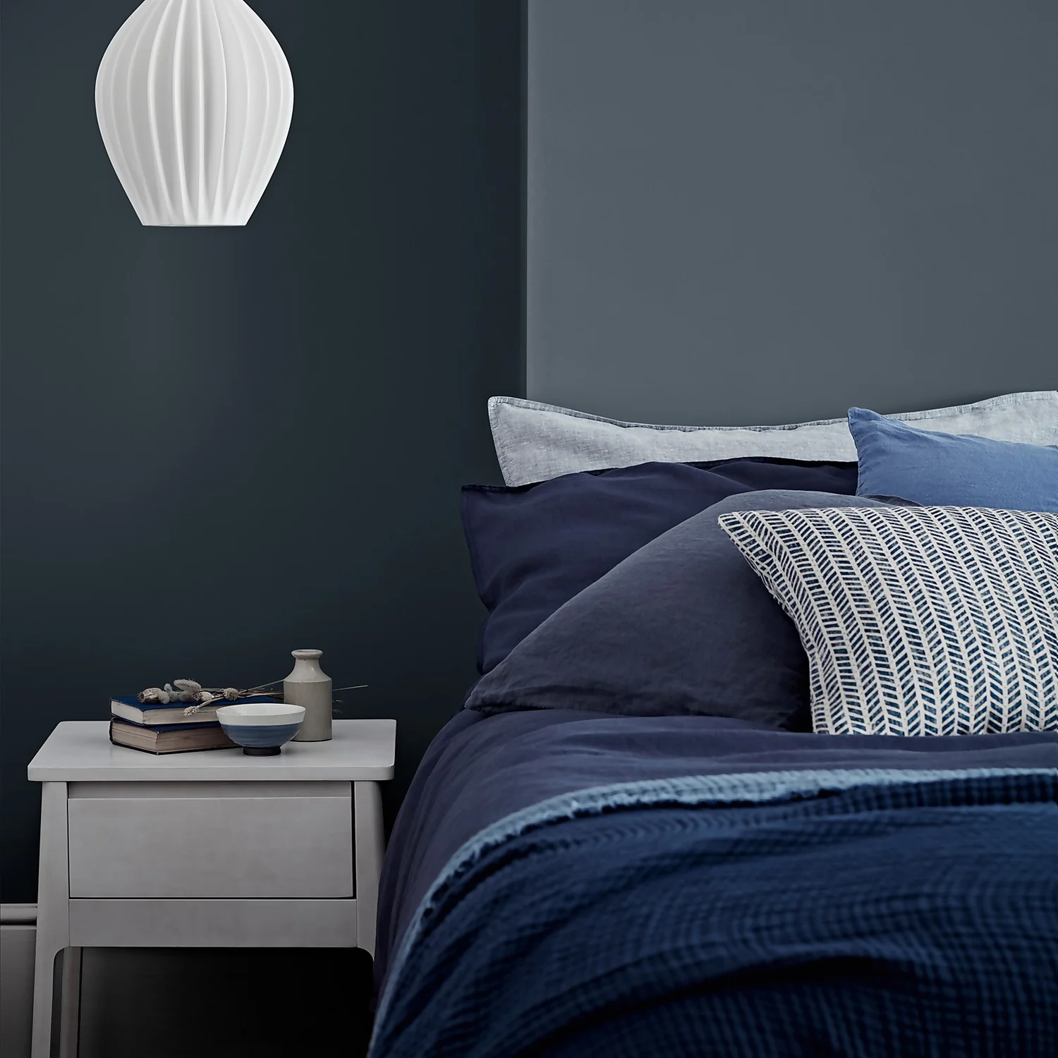 Aftershow – A Dark Navy Blues Paint that Blurs the Boundaries. One of 80 colours available in this size, Aftershow is a unique shade of dark navy paint that provides a dominating presence to any room setting. Create depth to any space, and to any room, with this beautiful dark Blues paint. Rather than making a room feel small, using a shade like Aftershow blurs the boundaries and makes any space feel larger. With a pRedsominant hue of deep navy Blues, Aftershow is a true favourite within this collection. – Crown Colour Specialist.