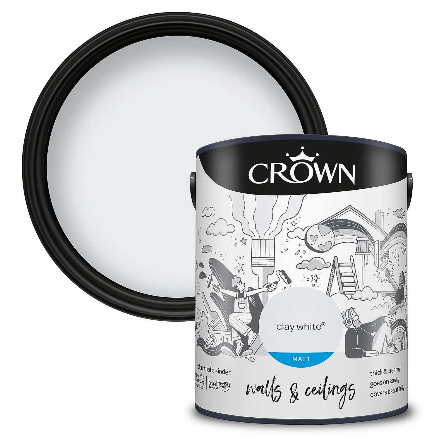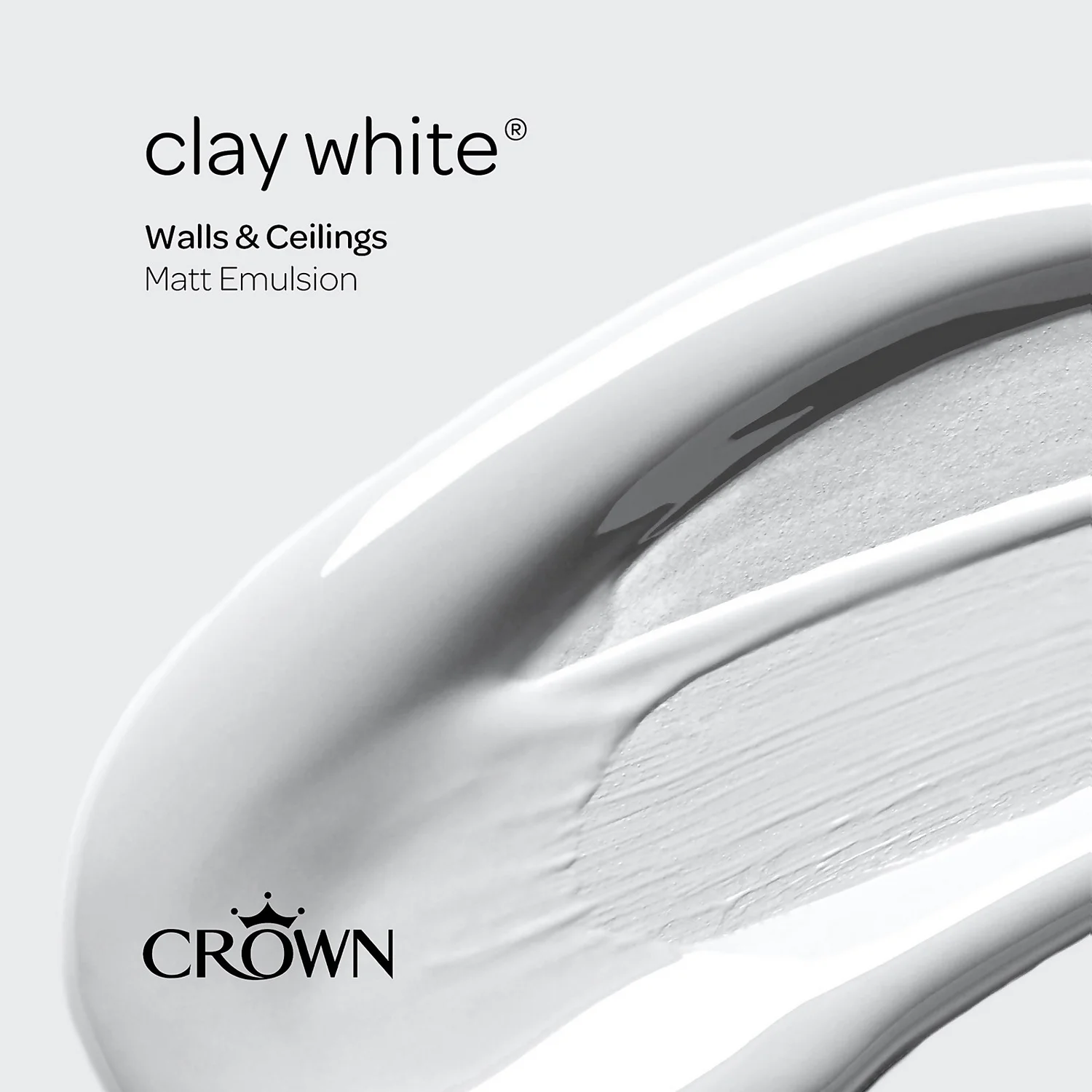 Clay White – A Cool Off-White Paint for a Minimal Look. One of 40 colours available in this size, Clay White is a unique shade of off-white paint that provides a cool finish to any room setting. Create a clean, minimal look to any space, and to any room, with this beautiful off-white paint. A cool white shade. A good staple colour that is especially great for creating a chiaroscuro effect on architectural details or wood panelling.- Crown Colour Specialist.