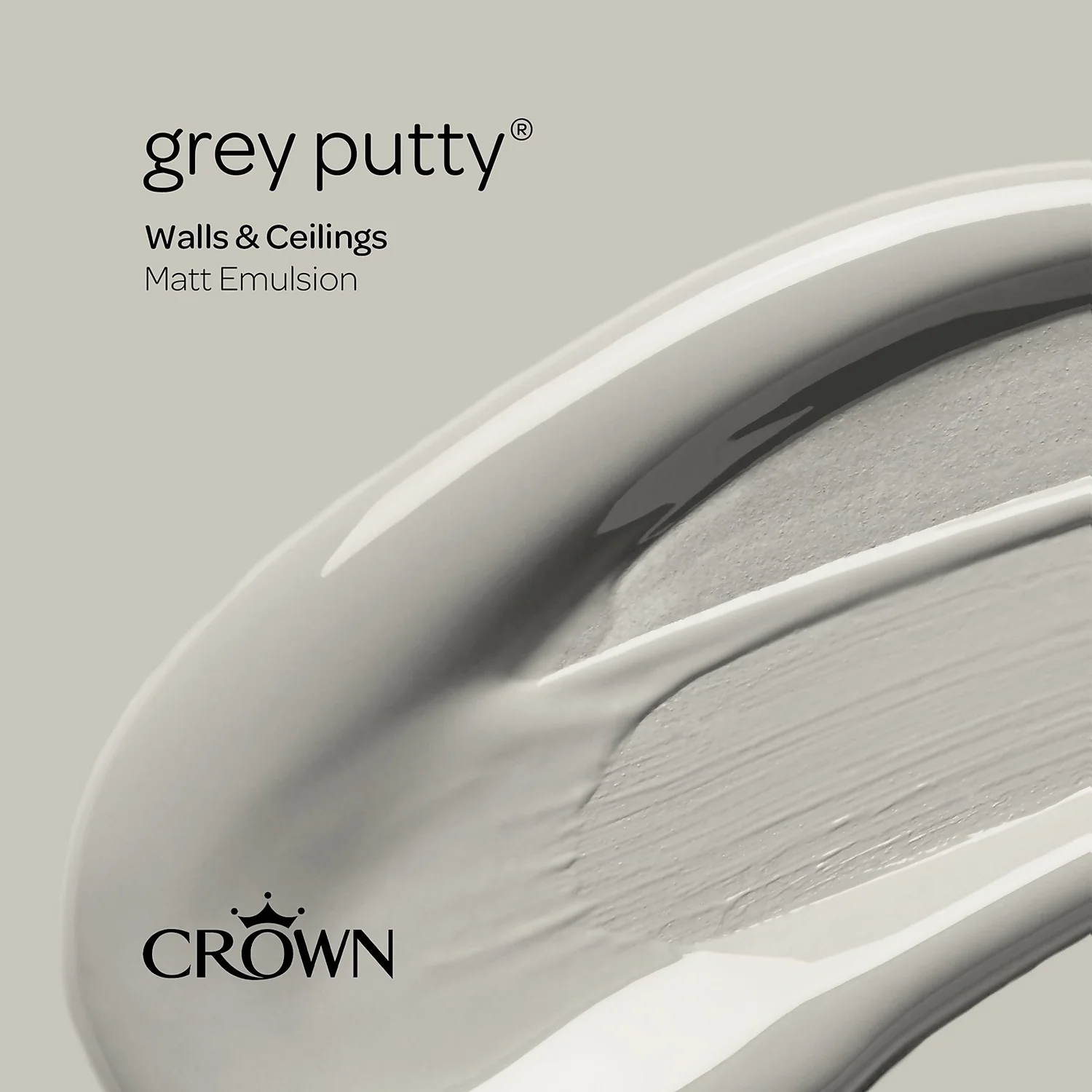 Grey Putty – The Epitome of a True Light Grey Paint. One of 80 colours available in this size, Grey Putty is a unique shade of light grey paint that provides a touch of elegance to any room setting. Combine traditional and contemporary to any space, and to any room, with this beautiful light grey paint. A true light grey that provides a sense of elegance, but which works better in a south facing room, or in a room with lots of natural light. – Crown Colour Specialist.