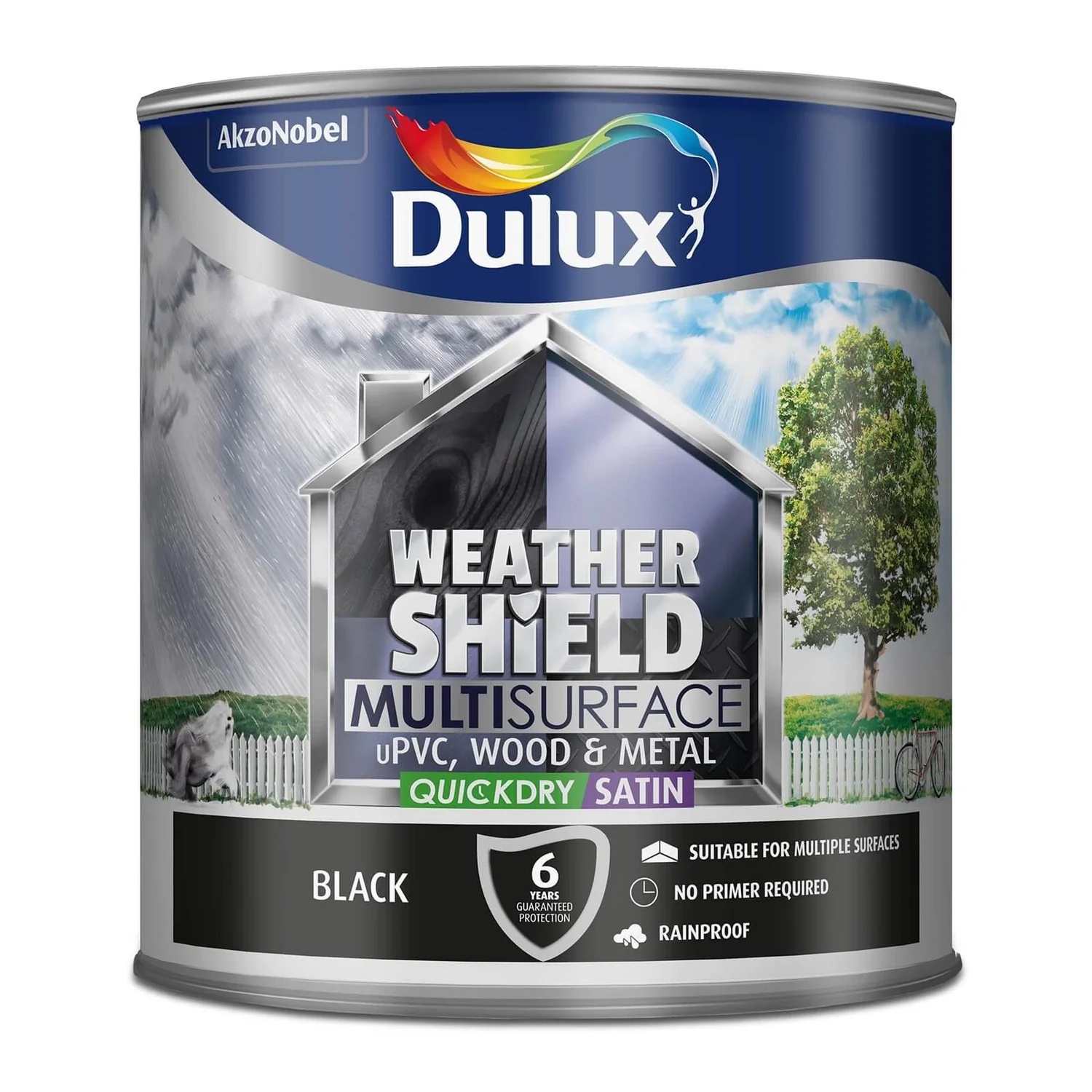 Dulux Weathershield Multi Surface Quick Dry Satin is a water-based finish that can be used on exterior wood, metal and uPVC and guarantees 6 year weather protection. The weatherproof paint film is mould resistant to minimise staining and flexible to prevent cracking. This keeps your paintwork looking better for longer compared to conventional Dulux paints.