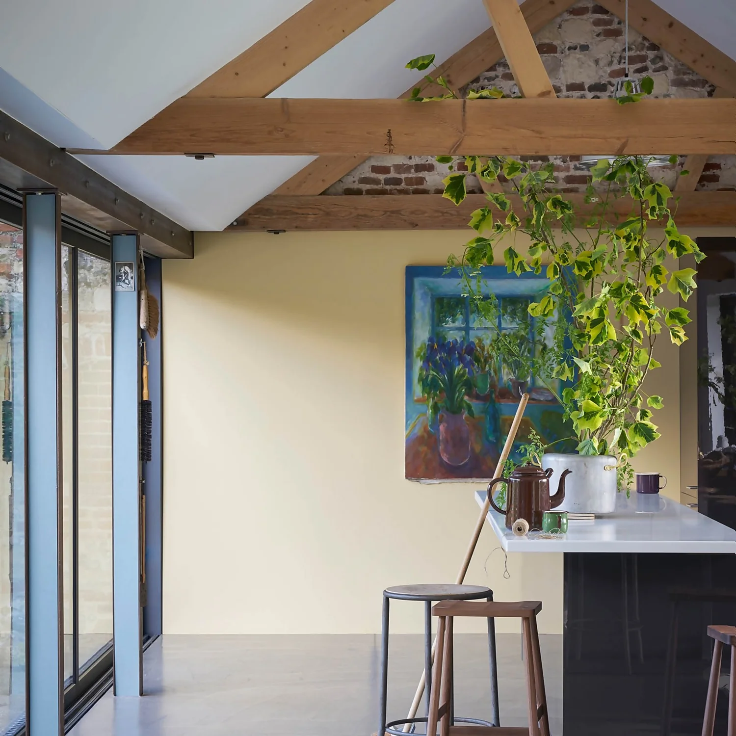 Hay is a warm and dusty yellow with a distinct green undertone, evoking the freshness of the crop from which it takes its name. It’s less intensely coloured than the sunny Yellow Ground, and therefore easier to use for those who love yellow but are nervous of strong wall colours.