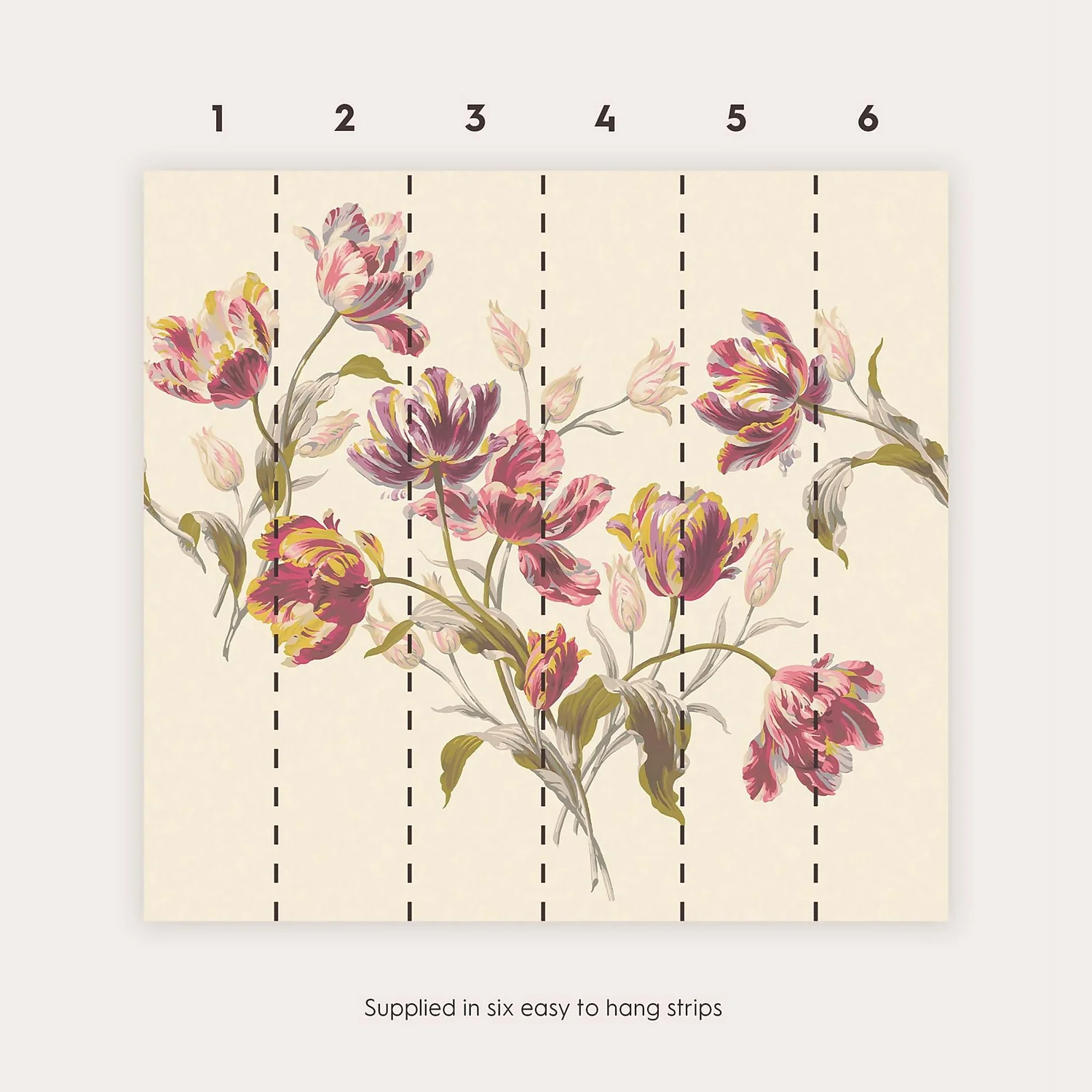 A classic Laura Ashley design, featuring gorgeous bold tulips in Cranberry hues, blown up to mural size to create a beautiful centre piece. Our murals come on one roll with 6 referenced panels. All Laura Ashley wallpapers are printed in the UK and are paste the wall application, simply paste the wall, hang your paper, and leave to dry. For best results we recommend using Laura Ashley wallpaper paste. Each roll is 17m long and 50cm wide. Delivery to UK Mainland Only.