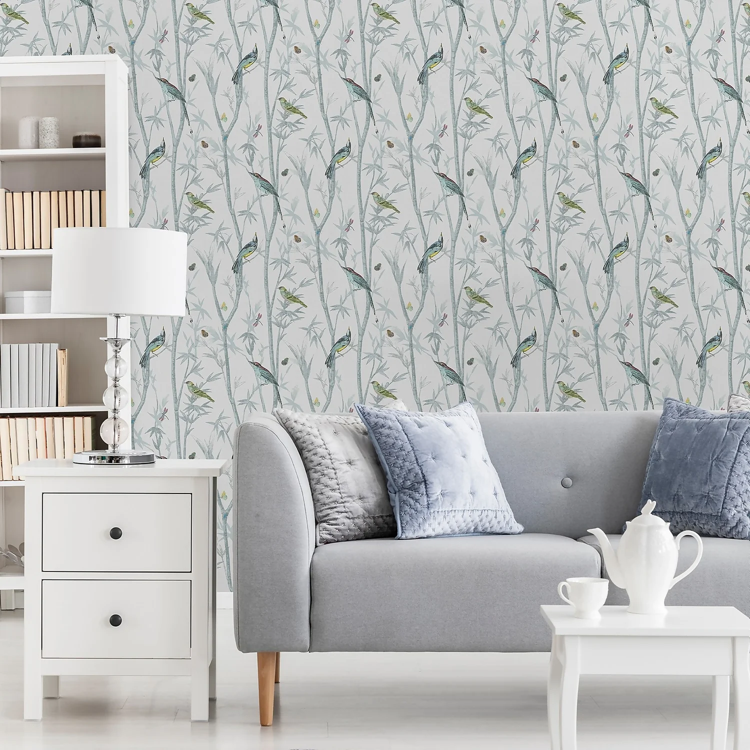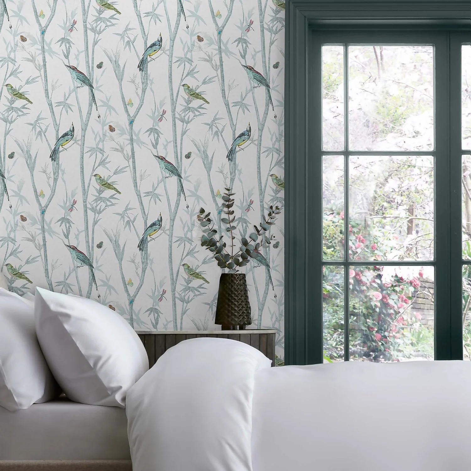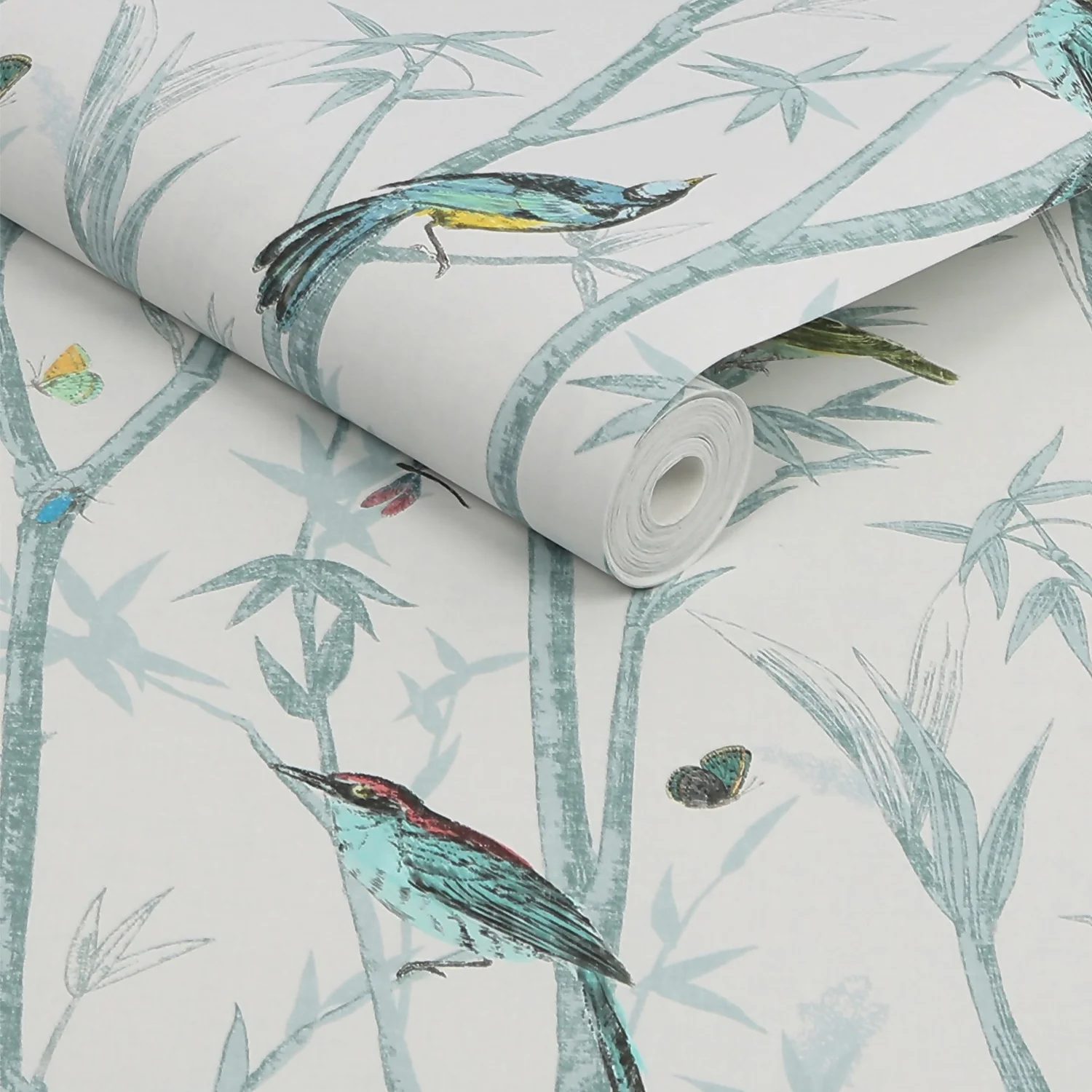 Add a touch of nature to your home with this beautiful wallpaper design. Chinoiserie Bird Trail in Duck Egg Blue is a classic design with birds and butterflies, but the added pops of colours really bring this wallpaper to life, whilst adding a modern twist. Printed on a matt paper this design has a luxurious finish whilst also being paste the wall making this wallpaper easy to hang.