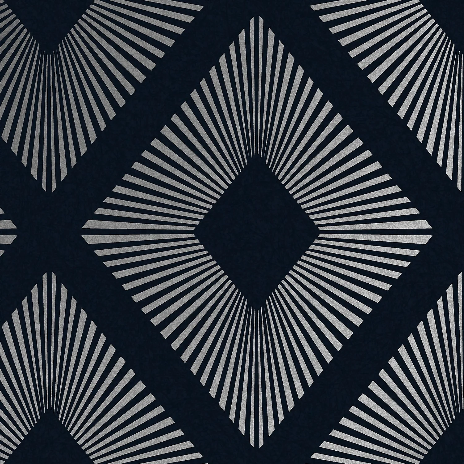 Add luxury and glamour to your walls with Deco Triangle Navy, this glamorous wallpaper design features a maxi geometric triangle in a statement silver metallic beautifully sat upon a deep navy background. Adding even more luxury, this statement design is printed on a fibrous paper which adds subtle texture whilst also being paste the wall meaning easy to hang.
