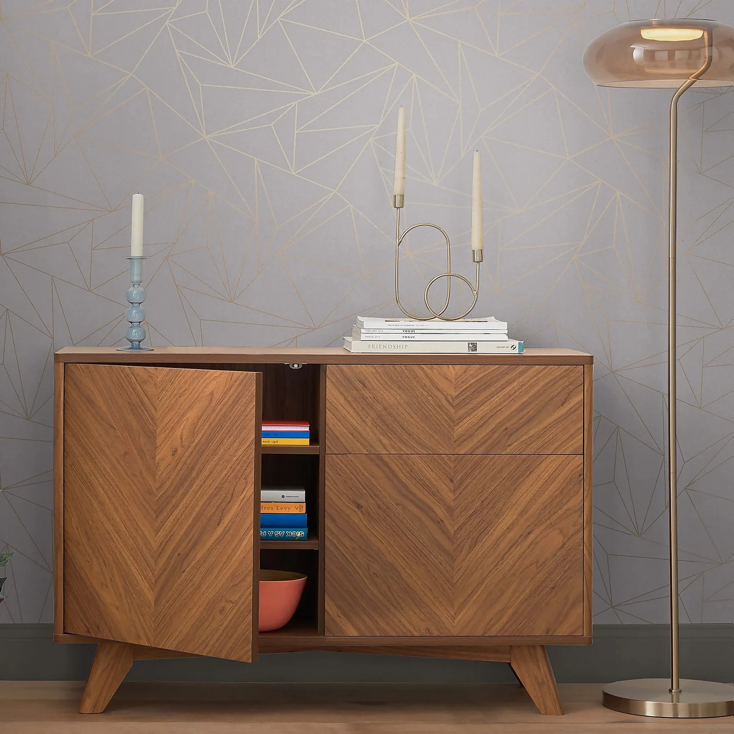 Scatter geo is a beautiful contemporary geometric wallpaper design. This eye-catching design features scattered rose gold metallic lines which come together to create a modern geometric pattern on a grey background. Adding even more luxury, this statement design is printed on a fibrous paper which adds subtle texture whilst also being paste the wall meaning easy to hang.