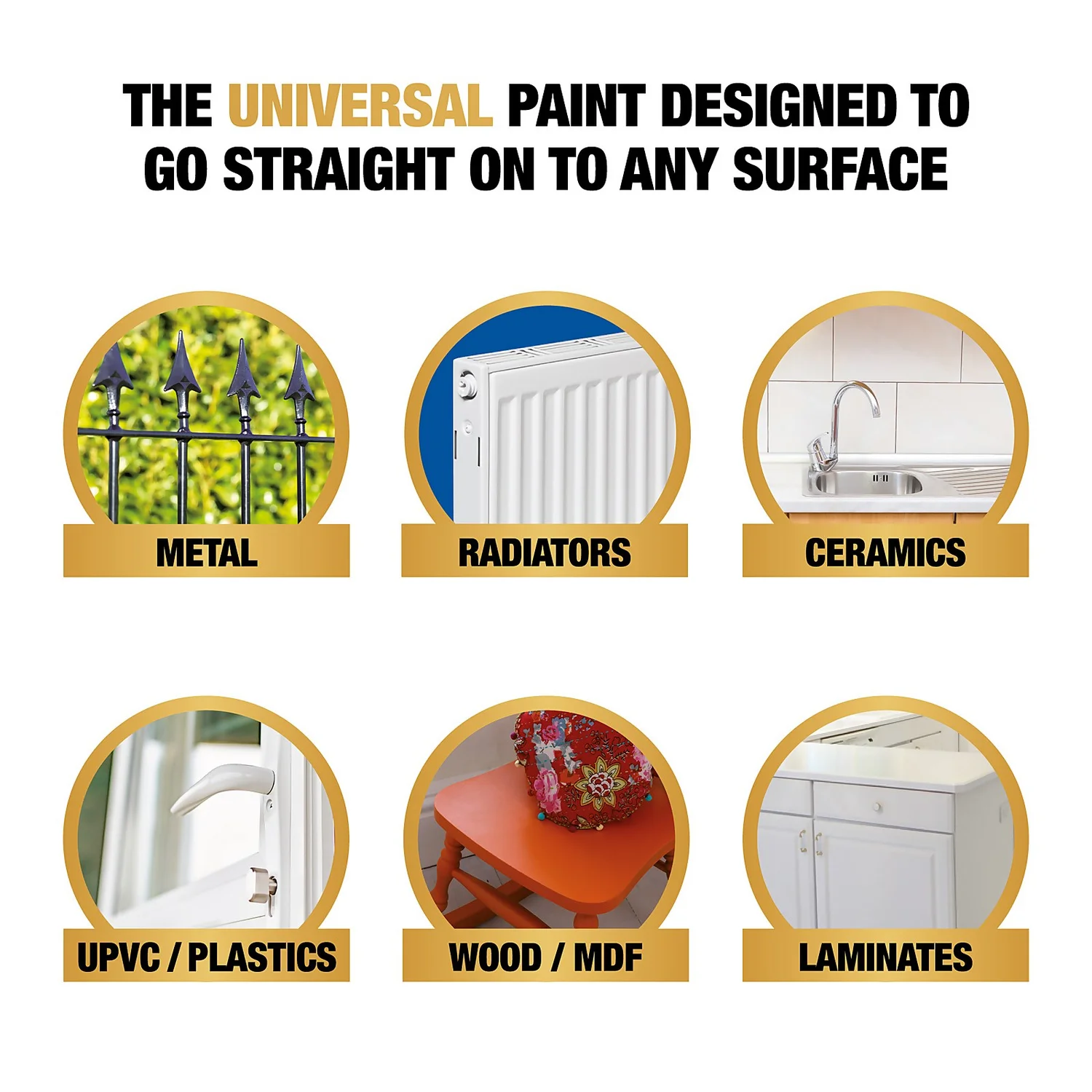 Universal can be applied directly to a wide range of surfaces including UPVC, wood, metal, plastics, ceramic and more This clever paint is also heat resistant, being able to instantly transform shabby radiators in just two simple coats, with our wide range of colours to choose from