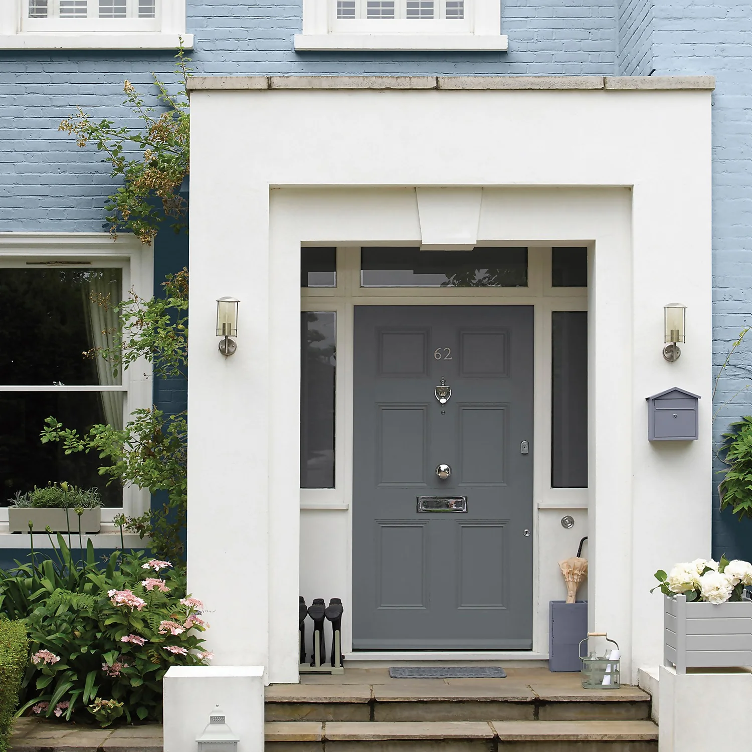 Morning Sky – A Muted Mid Blue Masonry Paint. One of 26 colours available in this size, Morning Sky is a unique shade of mid blue masonry paint that provides a refreshing feel to any house. Add a touch of colour to the outside of your home, with this beautiful mid blue exterior paint.“Best suited to places with an abundance of natural light, such as coastal villages and towns, this muted mid blue looks great combined with crisp whites or off-whites”- Sandtex® Colour Specialist.