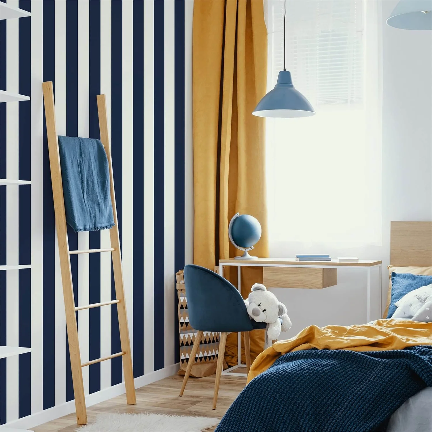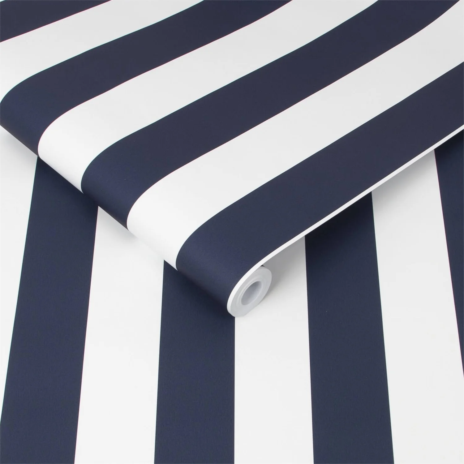 Add striking stripes to your space with the Superfresco easy navy stripe wallpaper. With its bold navy and matt white design, this is one wallpaper that doesn’t shy away into the background. It will command attention behind the headboard in your bedroom or create a stand-out dining space. This high-quality wallpaper can be hung either vertically or horizontally – the choice is yours! Whichever wall you choose to cover, this paper is sure to add a fashionable flair to your home.